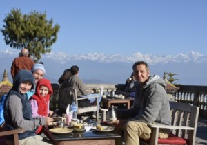 Wir sind froh, zumindest diese wenigen Tage in Nepal zu haben und genießen jetzt die Natur. Die faszinierenden Berge im wechselnden Licht und die entspannte Freundlichkeit der Menschen. Und vergessen darüber ganz, dass die Heizung ab und zu, also irgendwie immer ausfällt. Bis irgendwann die Finger anfangen weiß zu werden. Nach Nagarkot auf über 2000Meter Höhe geht es dann weiter Richtung Westen ins Tal. Da sind angenehme 21 Grad. Und die Berge noch näher. Und vielleicht in den Dschungel zu den Tigern. Oder doch zu den Schneeleoparden, von denen hier noch einige leben sollen? Wohin auch immer, die Aussicht auf die Berge dürfen wir noch ein bisschen genießen. Namaste! (Was nicht nur guten Tag heißt,  glaube ich, sondern auch so etwas wie von Herzen, im Yoga zumindest, oder?)