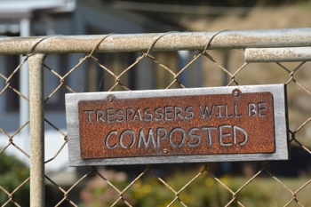 Schild an Pforte, unser Haus in Golden Bay