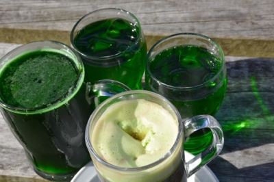 Am St. Patrics Day sind alle Getränke grün, auch der Kaffee…(schmeckte sogar). Wer erkennt das Bier?