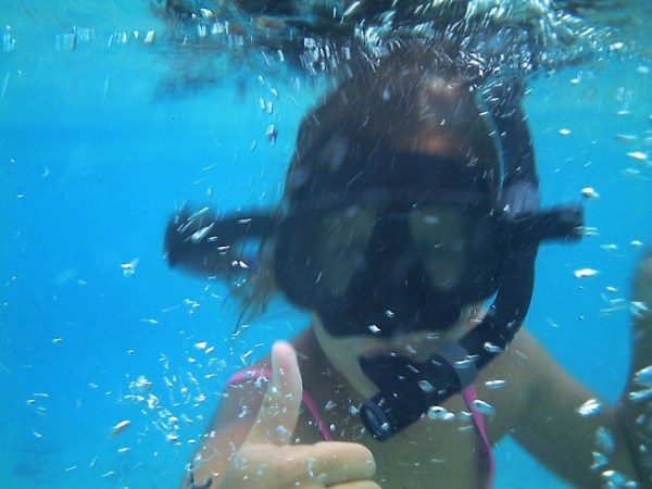 Beim Schnorcheln, den Kopf kurz unter der Wasseroberfläche, ist diese Faszination wieder da. Man taucht ein in eine völlig andere Welt! Es macht großen Spaß, diese Welt zusammen mit Antonia zu entdecken, wir geben uns immer Handzeichen unter Wasser, wenn wir etwas Besonderes sehen. Und das sehen wir oft. Riesige Rochen, die eins mit ihrer Umgebung zu sein scheinen, wie tot wirken und sich dann plötzlich platt über dem Boden bewegen,  schillernde Fische in Regenbogenfarben und ganze Fischschwärme, die aussehen als würden sie Ballett tanzen. Korallenriffs in lila und gelb aus deren Löchern Fische und Seeigel gucken. Ich habe heute die neue Unterwasserkamera ausprobiert, mit der man auch filmen kann, es war aber im Grunde bereits zu dunkel zum fotografieren und, naja, ich übe noch. Aber es macht Spaß, mit Kamera unter Wasser und überhaupt, dieses Schnorcheln! Großer Kinderspaß! Antonia staunte und sagte immer wieder, beim ersten Mal: „Das ist ja wie eine eigene Stadt unter Wasser! Ich komme mir vor wie in einem Riesenaquarium, wie ein Fisch.“