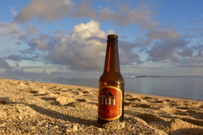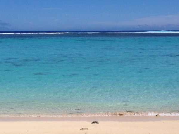 Als wir auf Rarotonga landen, empfängt uns eine heiße Brise und ein Mann mit Ukulele. Frauen mit Blüten im Haar nehmen lächelnd unsere Pässe entgegen. Wir lächeln schweißüberströmt zurück. Die Sonne brennt, wir fühlen uns wie ein ausgewrungener Schwamm. Der Transfer zu unserer Unterkunft ist teuer. Also entscheiden wir, den örtlichen Bus zu nehmen, der einmal pro Stunde die Insel umrundet. Wir postieren uns am Straßenrand und warten. Die T-Shirts sind klatschnass inzwischen. Da hält ein alter Van mit Ladefläche. Wir dürfen mitfahren. Der Fahrwind ist herrlich und wir bekommen schon mal einen Eindruck von der Insel. Rarotonga, die Hauptinsel der Cook Islands (vier Stunden Flugzeit nordöstlich von Neuseeland) hat nur eine Straße, die auf 32km einmal herum führt. Rarotonga ist ein Atoll, das heißt, von einem Riff umgeben. Es gibt zwar einen Hafen im Hauptort, aber ansonsten ist das offene Meer von der Insel aus nicht zu erreichen. Meterhohe Wellen schlagen stattdessen in der Ferne gegen das Korallenriff im Meer. Deshalb gelten die kleinen Cook Inseln, es sind an die hundert, als Schnorchelparadies.